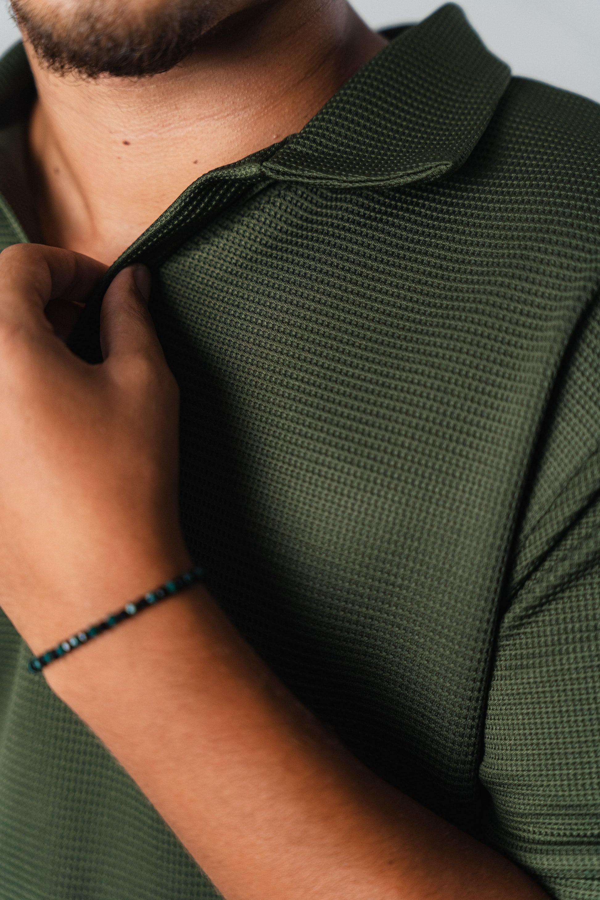Elevate your everyday wardrobe with this effortlessly refined polo shirt. Designed with a minimalist textured finish and a modern open collar, it offers a clean silhouette that speaks sophistication. Whether you’re dressing up or keeping it casual, this piece adds a polished touch to any look simple, sharp, and undeniably timeless.